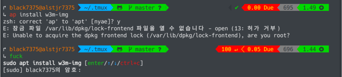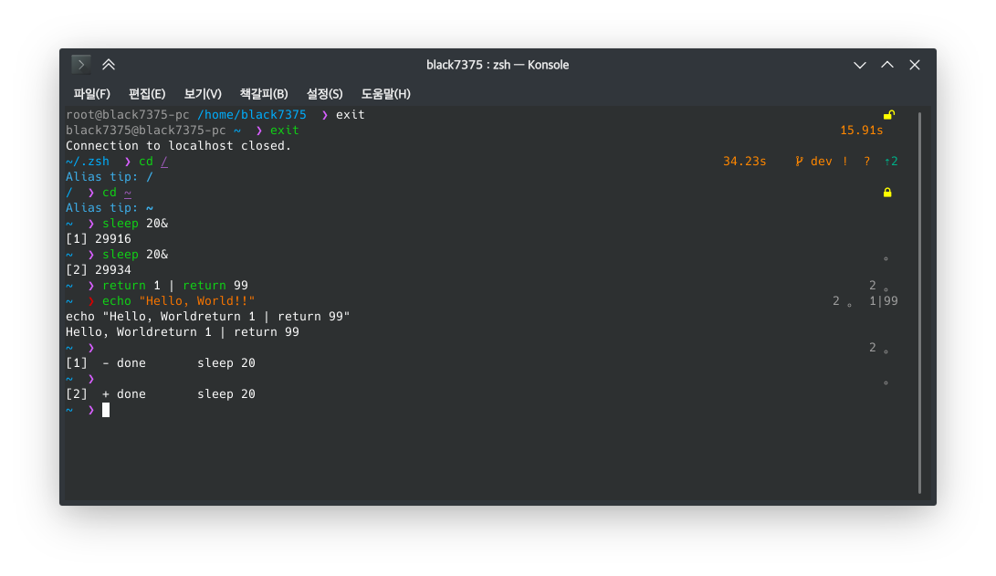 특히 Shell의 오른쪽에 정보를 표시할 수 있는 RPROMPT와 바로 선택이 가능한 자동 완성, 다양한 플러그인 생태계(Oh-My-Zsh, Prezto 등)가 매력적이었습니다.