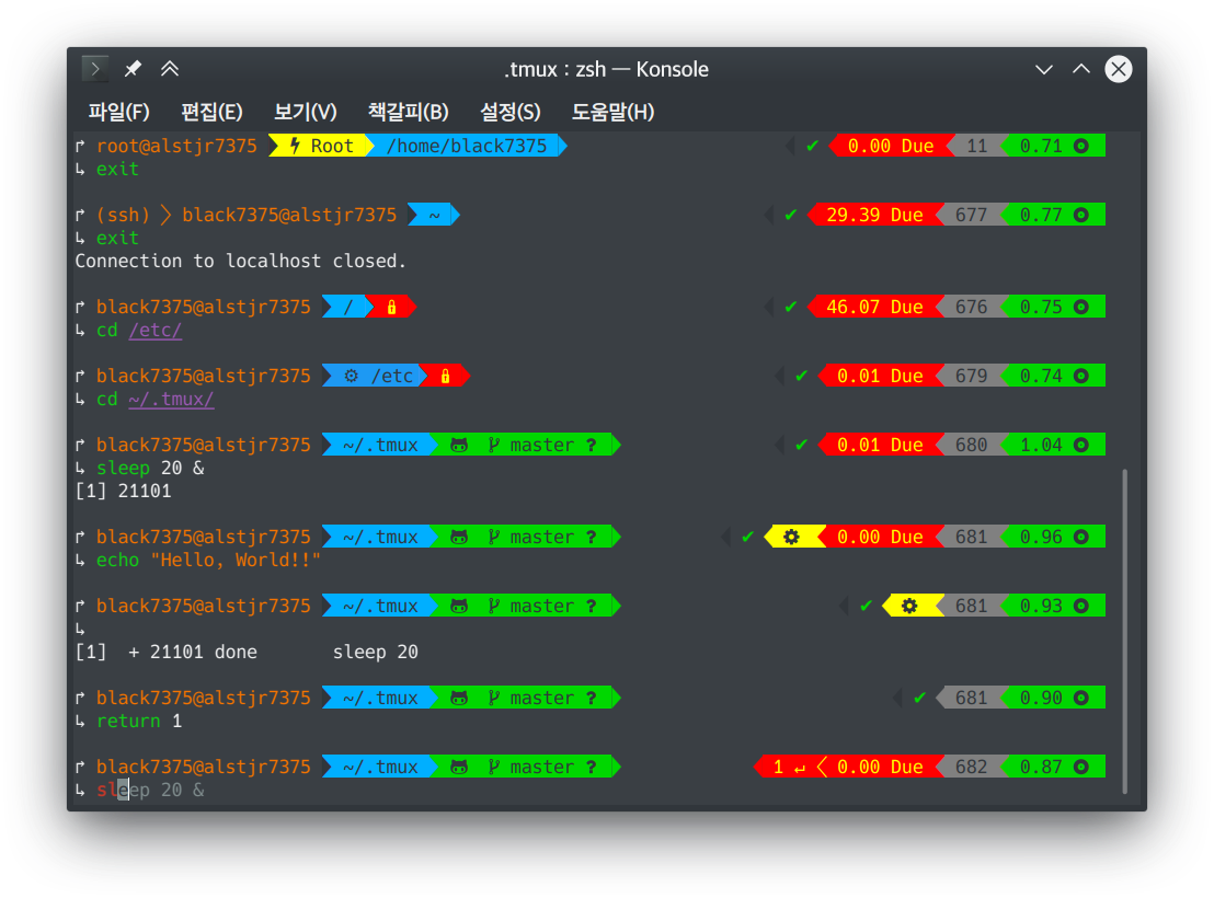 Powerlevel9k는 다양한 세그먼트를 지원할 뿐만 아니라 꾸미는 방법, 예시, 유저 세그먼트등의 문서화가 잘되어 커스텀하기 편합니다.