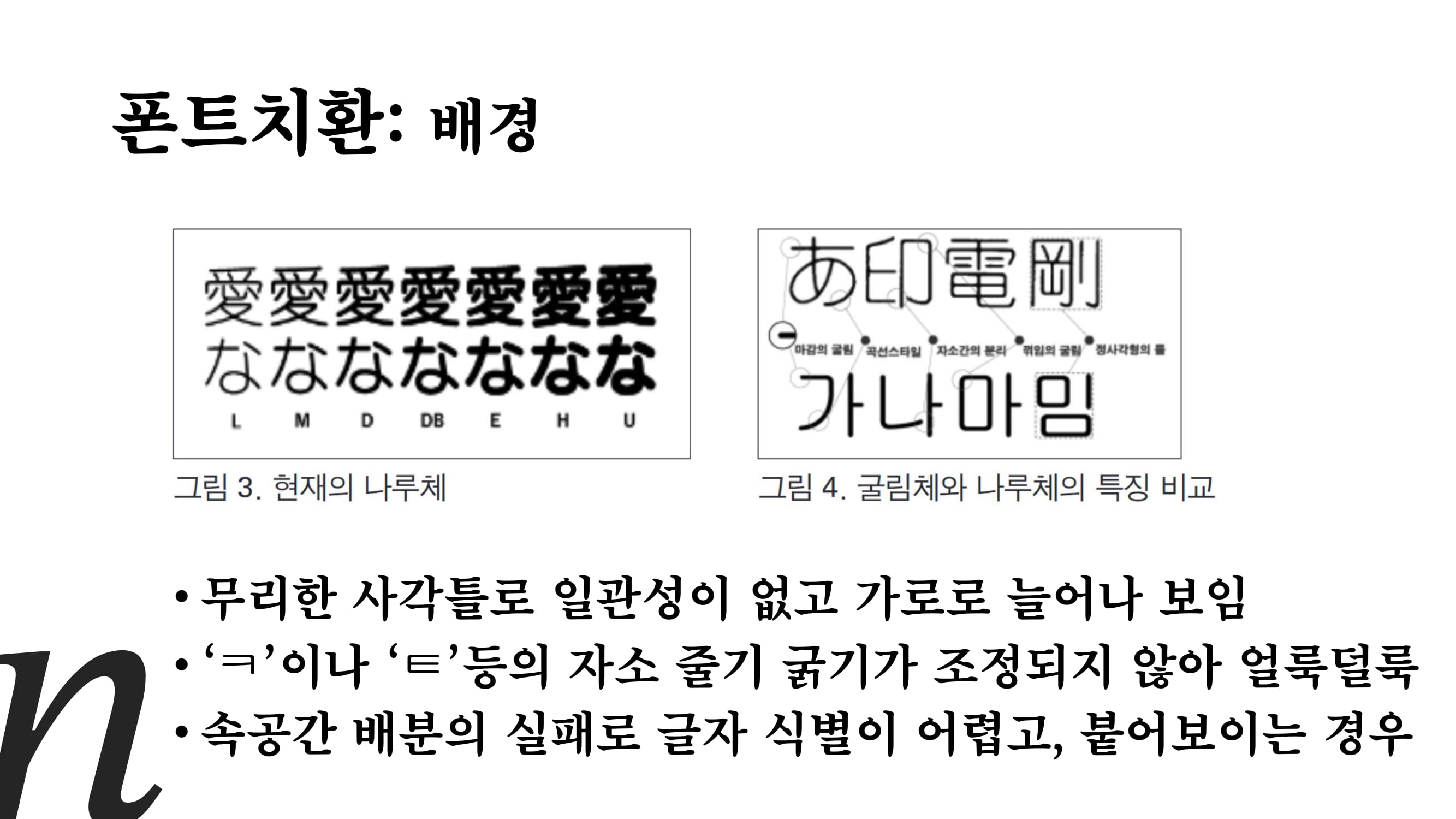 큰 글자라면 어색함이 덜하겠지만, 글씨가 작아지면 어색함과 가독성 문제가 속출하기 시작합니다.