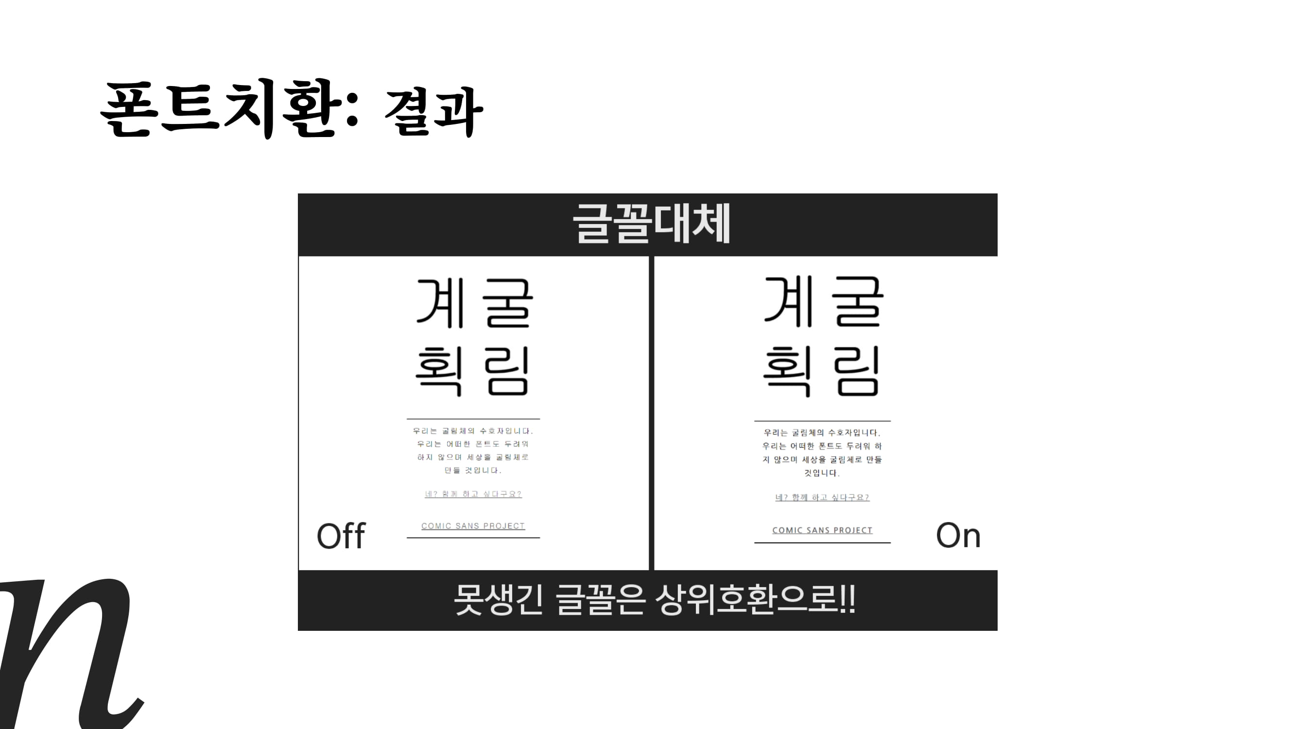 - 유명한 글꼴: 웹사이트 디자이너가 유도한 특성을 최대한 지켜주기위해 비슷한 조형적 특성을 가지는 글꼴로 대체.