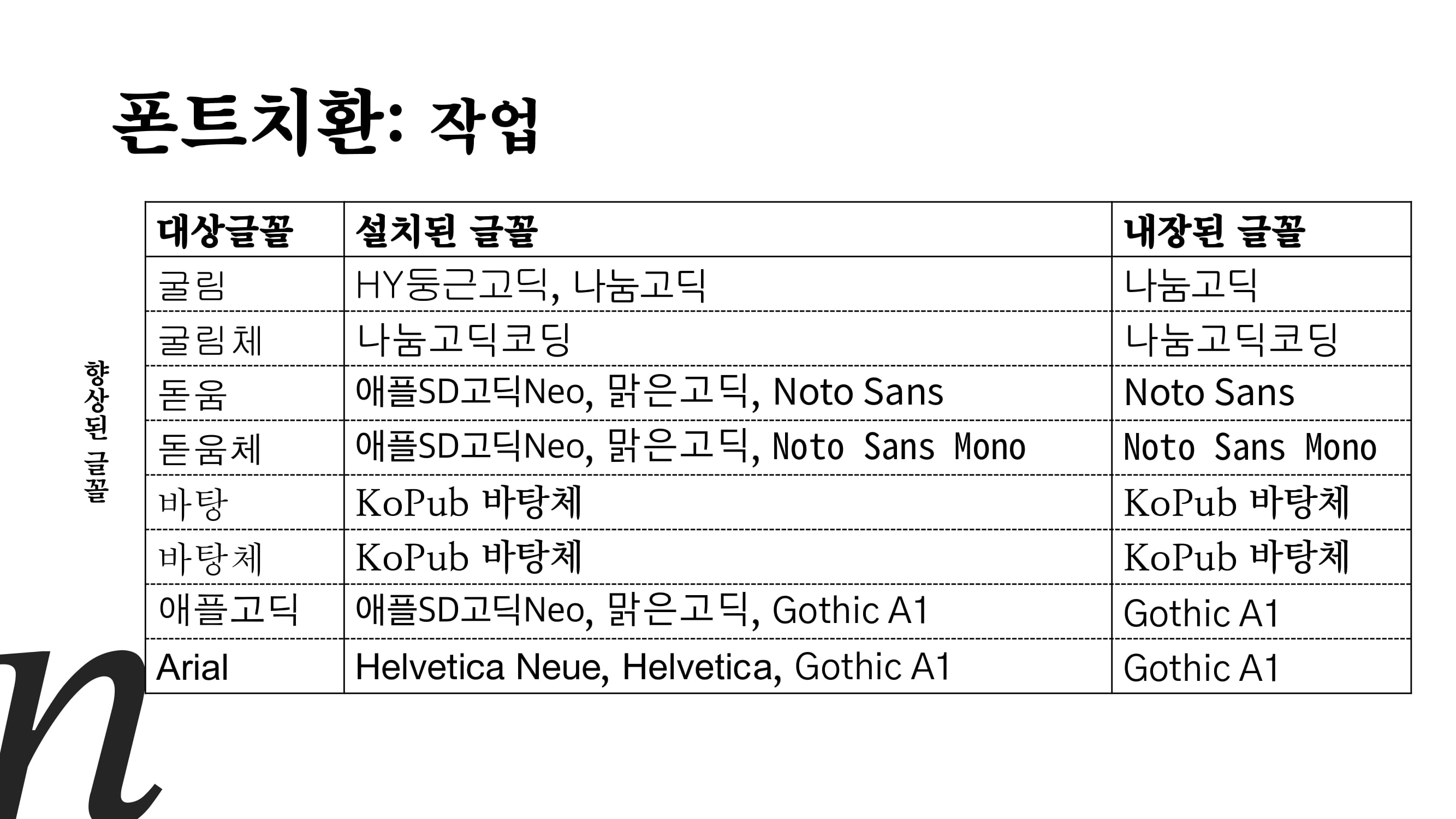 - 못생긴 글꼴: 굴림체처럼 못생긴 글꼴은 더 나은 글꼴로 바꿔주는 것.