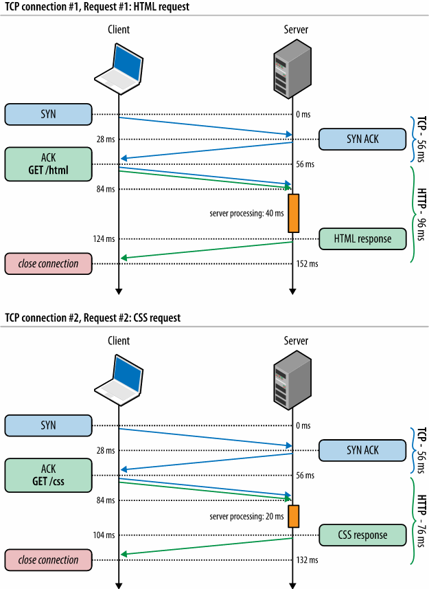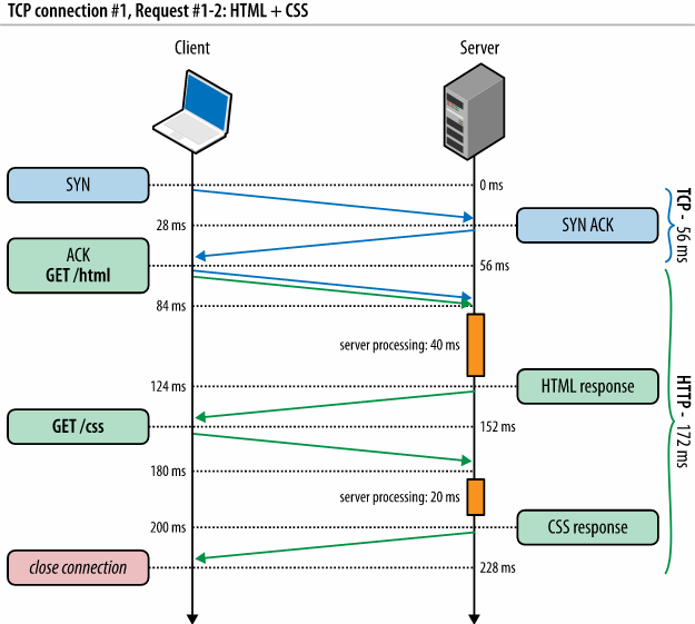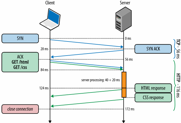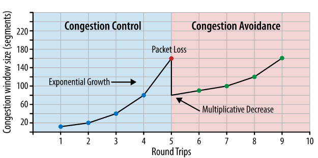 필요한 데이터 양이 초기 혼잡 윈도우(일반적으로 14.6 KB 압축)를 초과하면 서버와 사용자 브라우저 간에 추가 왕복이 필요하기도 하다.