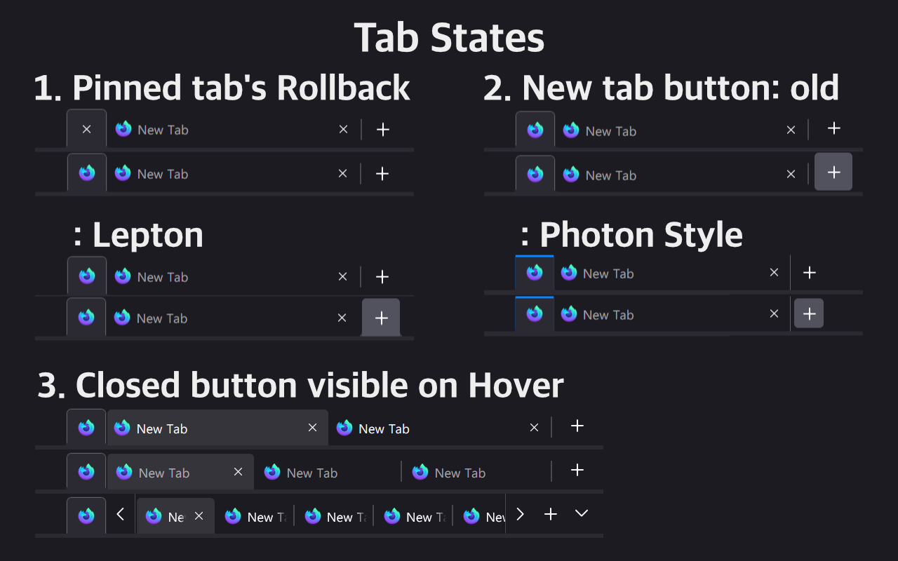 파이어폭스는 탭을 잘 보여주기 위한 3단계가 있다.