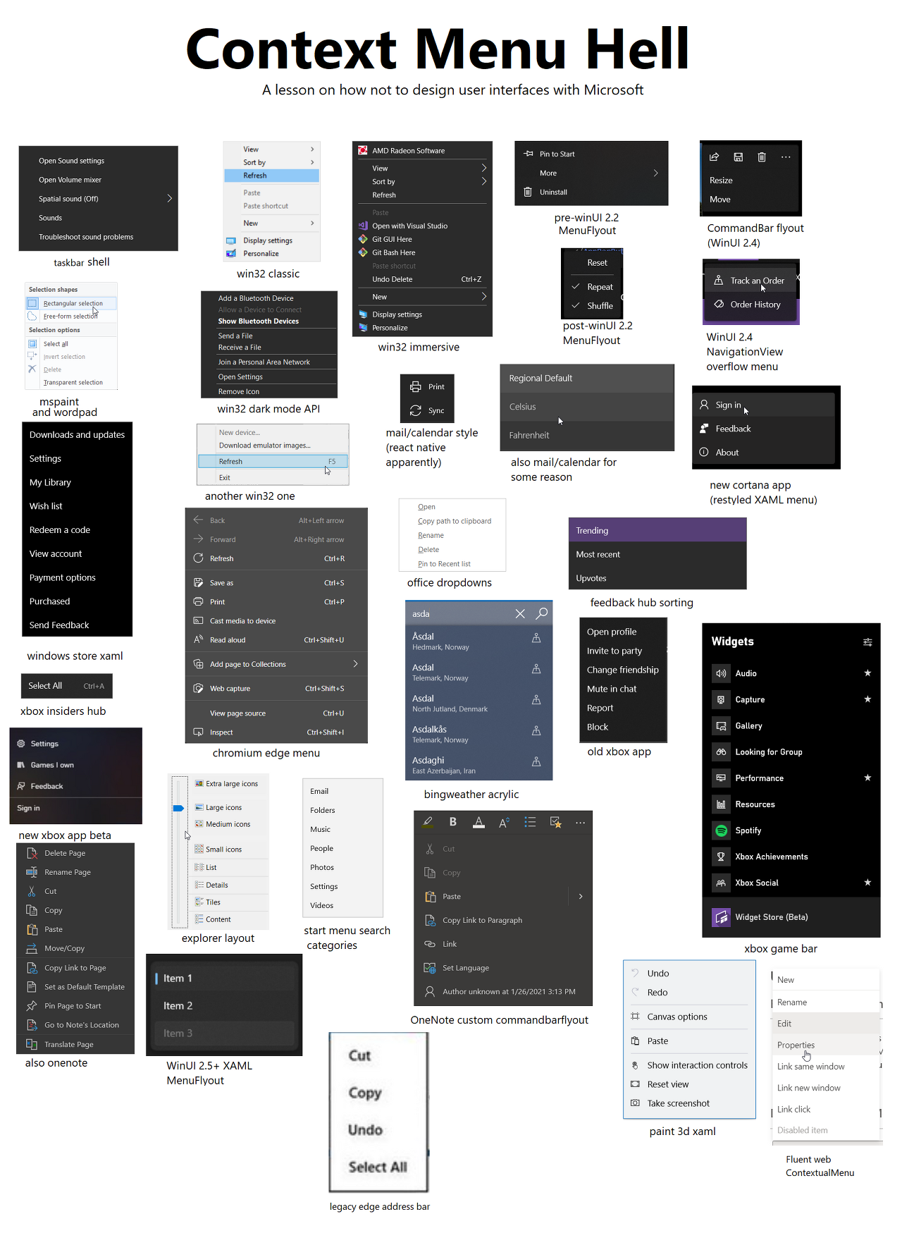 다만 패널과 다르게 컨텍스트 메뉴는 플랫폼마다 생김새가 다르고, 종류가 너무 많아서 애좀 먹었다.