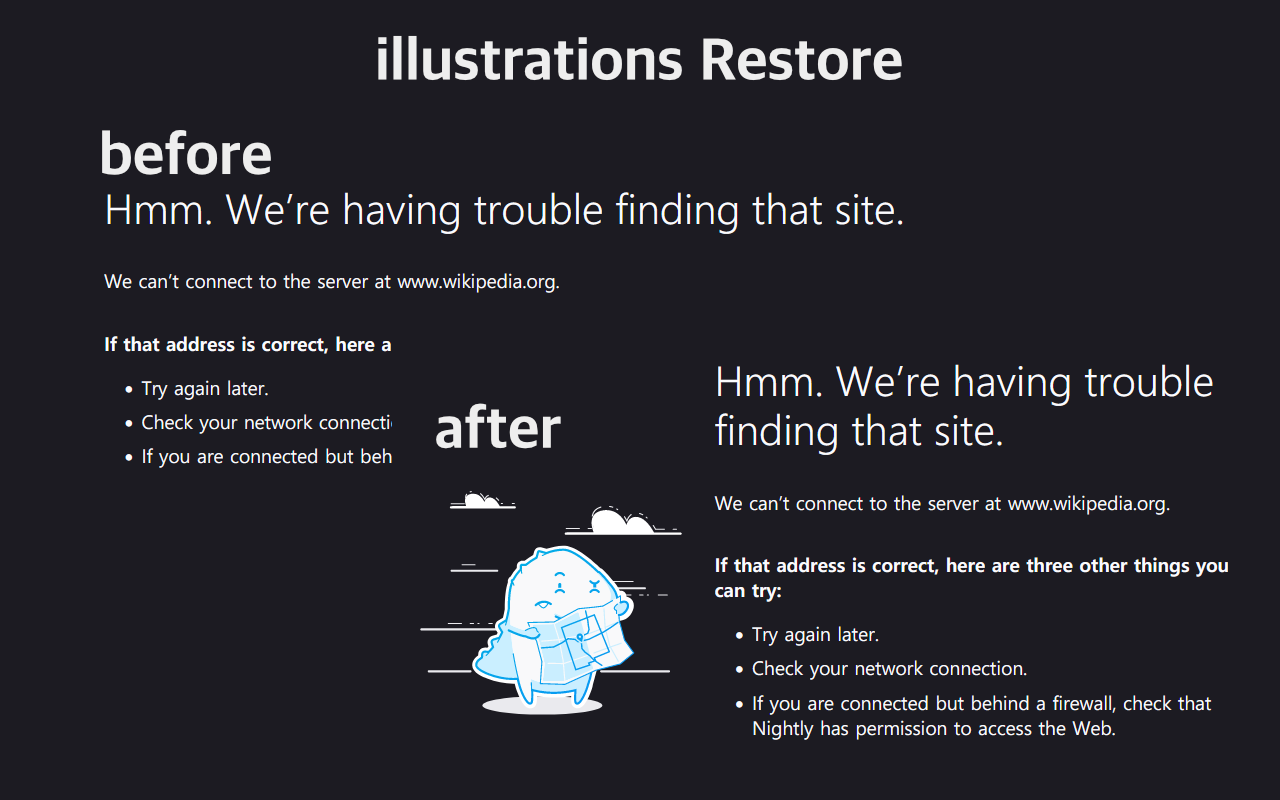 - 에러 페이지: 일러스트를 복원하여 인간적으로 만들기