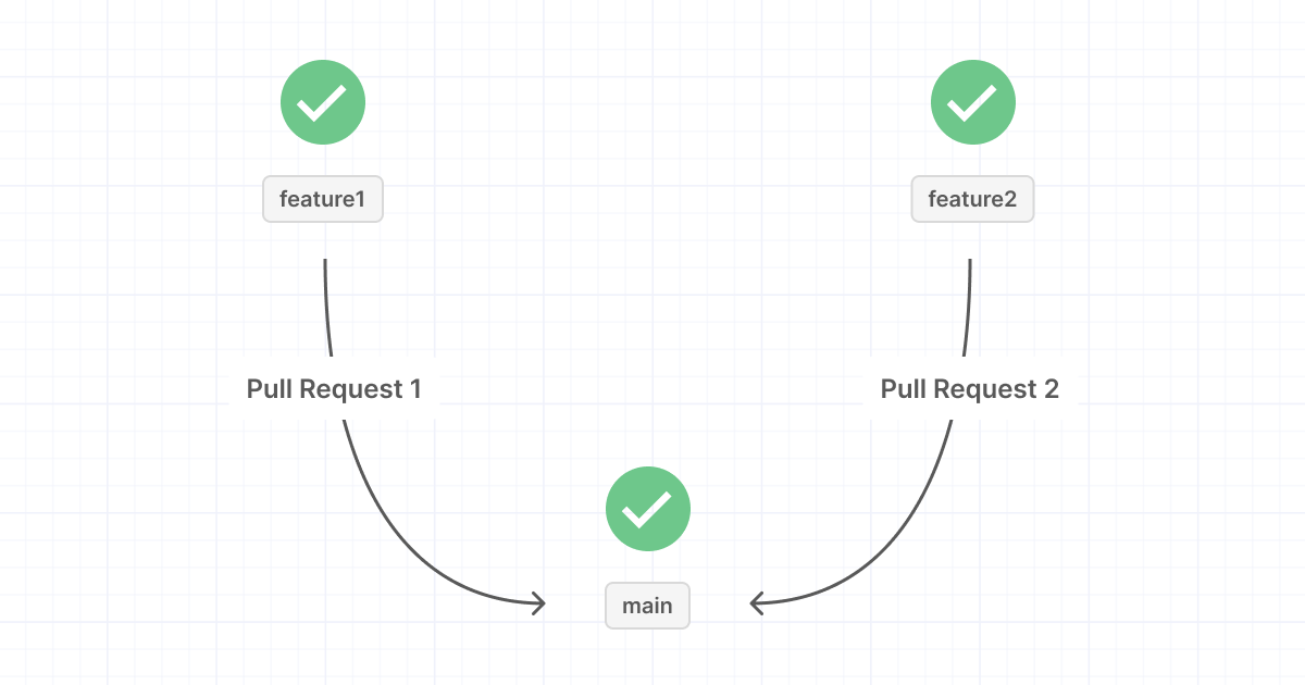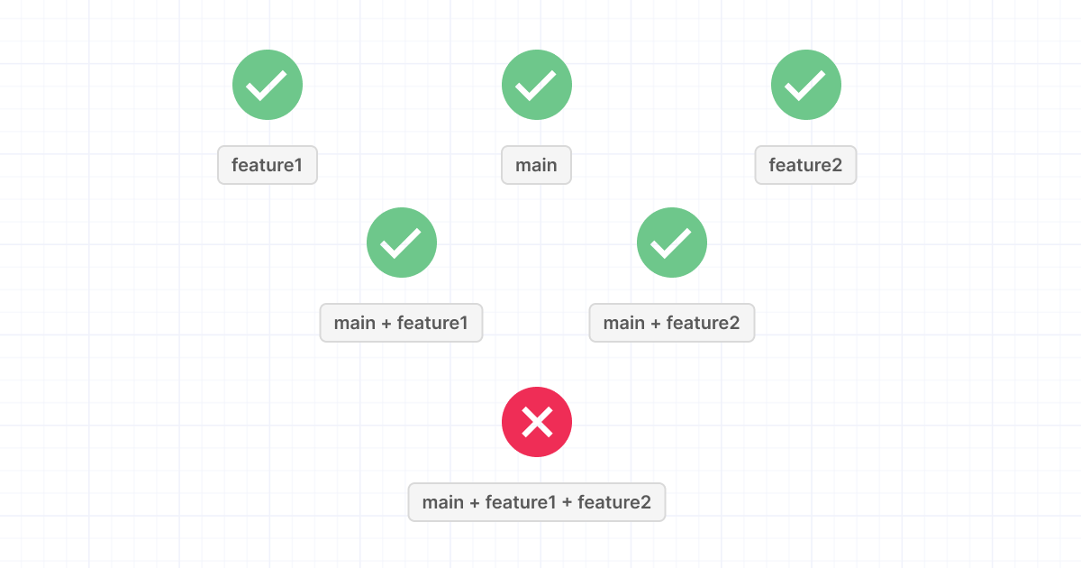 예를 들어, 잘 작동하는 feature1과 feature2라는 풀리퀘스트가 있다고 가정해보자.