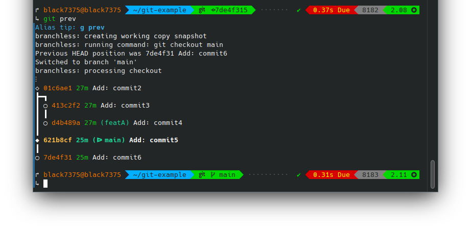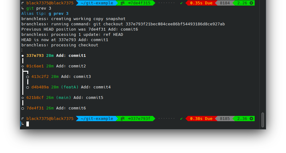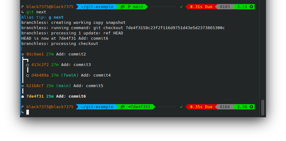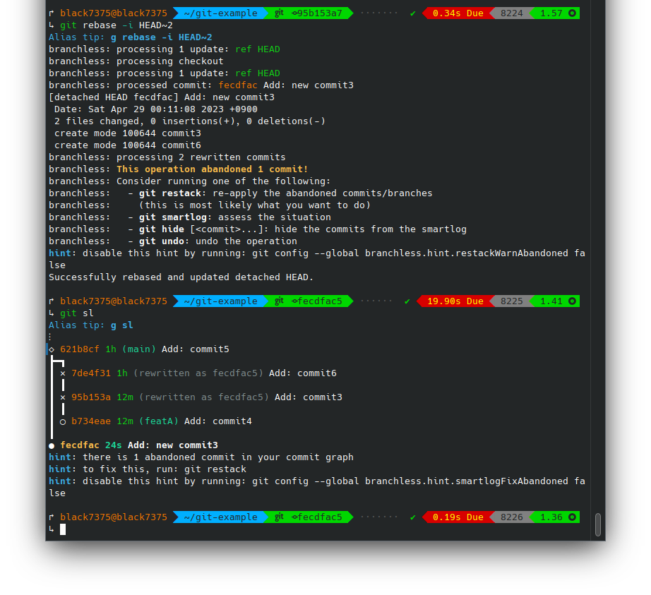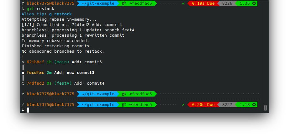 - prev 커밋에서 리베이스로 재작성 후 git next로 움직이고 싶다면 git restack으로 고쳐주기