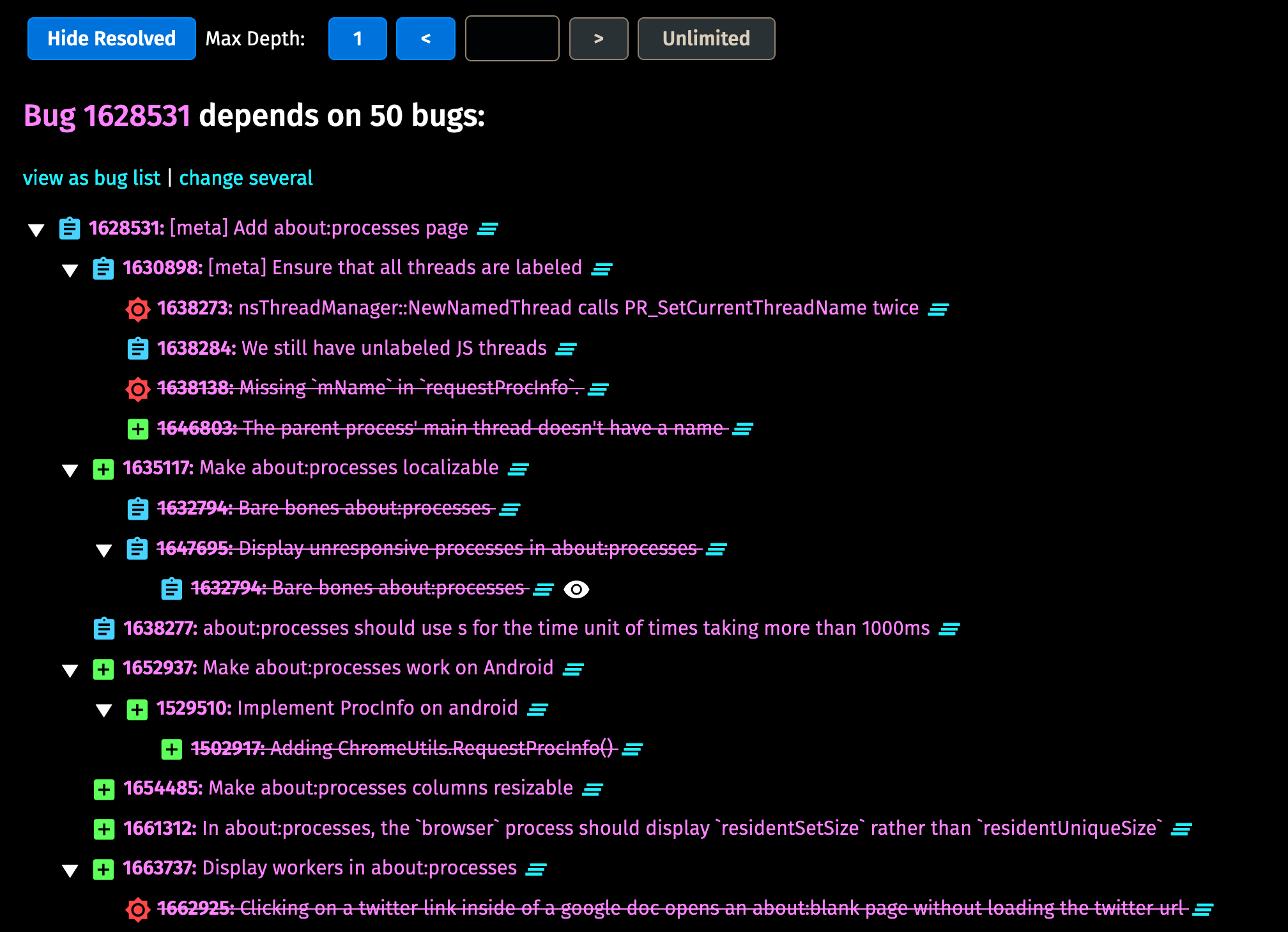 이슈 관리에 있어서도 종속성을 다룰 수 있었으면 한다. [about:Mozilla's blockers and needinfos, QA/Bugzilla/Fields/Status]