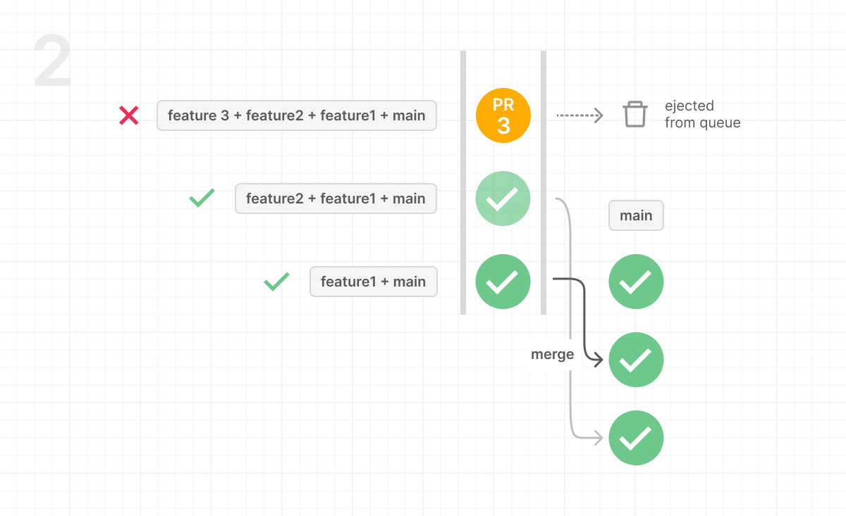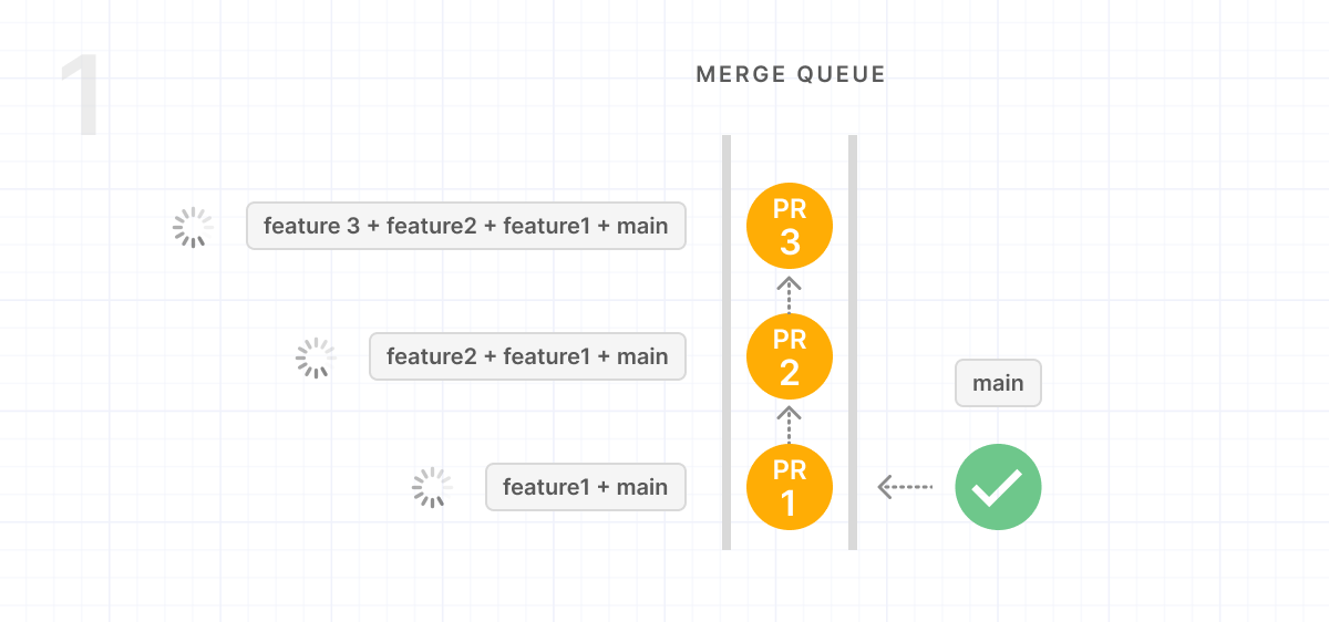 - Merge queue에 존재하는 분기의 상태로 풀리퀘스트를 업데이트