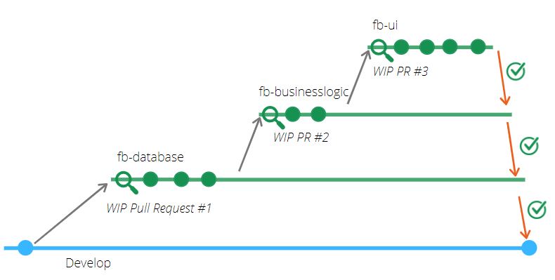 - Feature 브랜치에서 개발해 Develop 브랜치에 병합