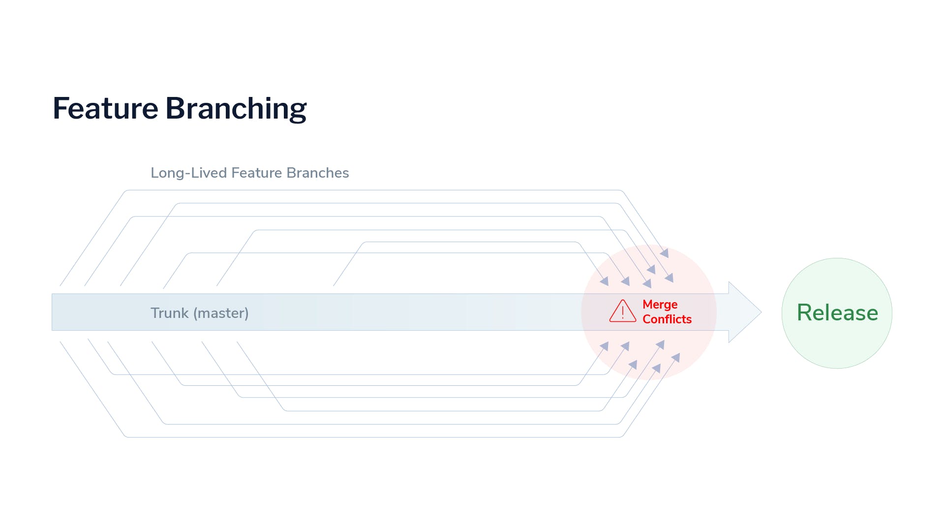 - 기능은 플래그를 사용해 Off 상태로 병합해 항상 최신 코드 유지