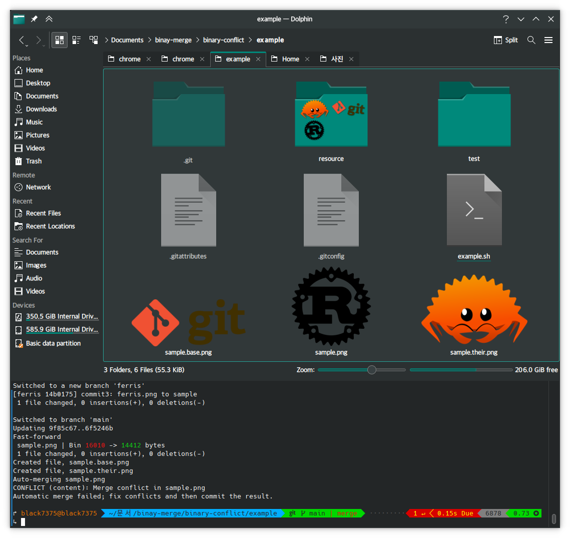 Git이 충돌날때 고질적인 단점 중에 하나는 바이너리의 처리다.