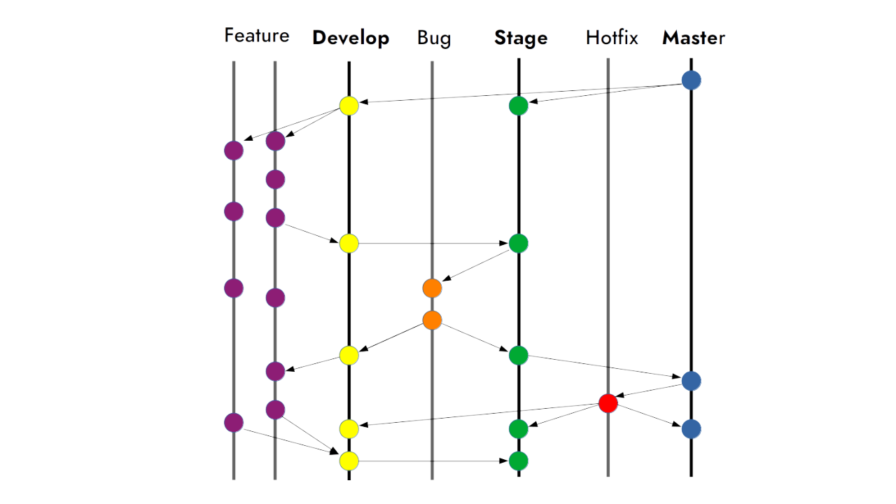 Develop, Stage, Master는 장기적으로 유지되고, Feature, Bug, Hotfix는 단기적으로 유지하는 건 어떨까?