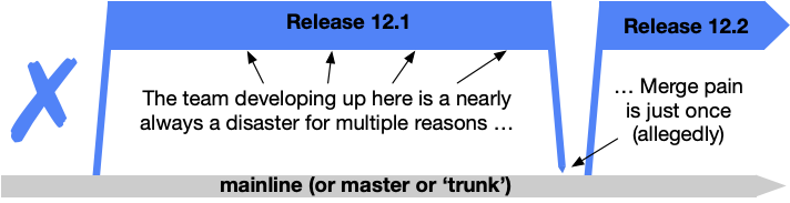 - Release에서는 버그를 고쳐 Main 방향으로 전파 (Merge Down)