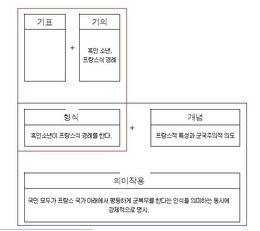 - 기호를 해석할 때, 외연(1차적)-내연(2차적)이 합쳐져 의미가 작용할 수 있음