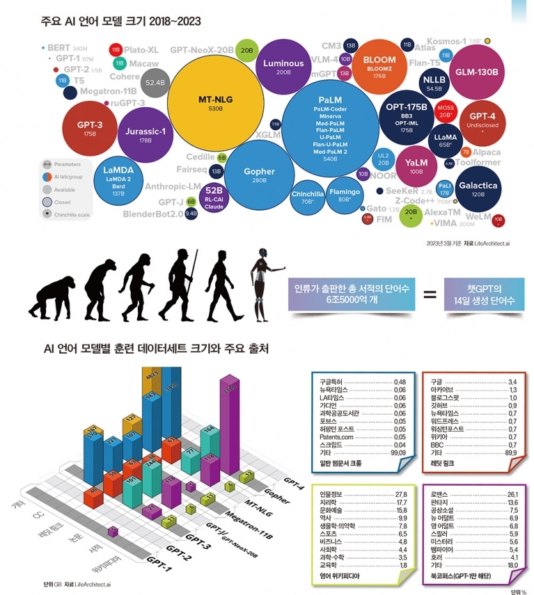2018년에 거대한 사이즈였던 BERT(3억 4천만), GPT(1억 1천만)도 지금은 피라미에 불과합니다.