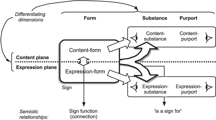 - 표현과 내용이 실체화 될때 요지에 형식이 투영되며, 동시적으로 생성
