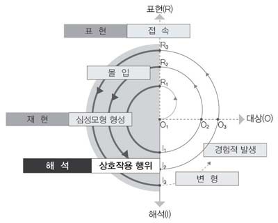 표현, 대상, 해석에 의해 기호작용(Semiosis, 세미오시스)이 일어나는 방법은 다음과 같구요,