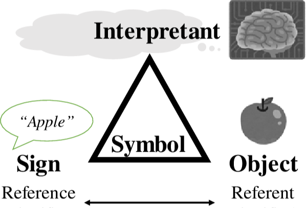 Sign Object Interpretant Symbol Reference ( Signifier ) Referent ( Signified ) “ Apple ”